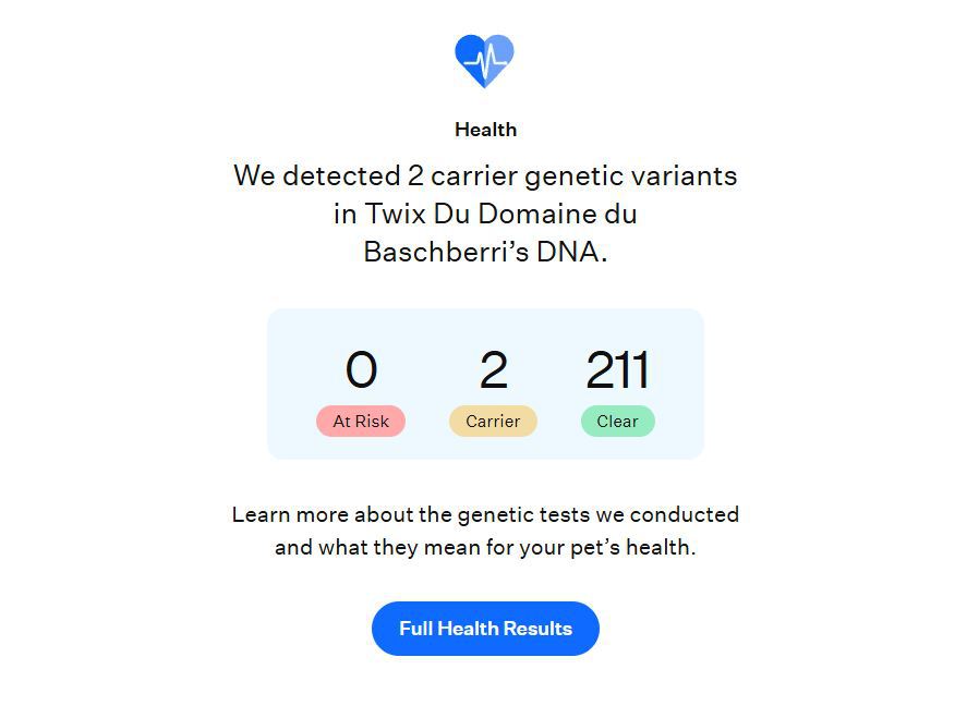 Il s'agit d'un test de liaison génétique et que Twix (dit Tolkien) est susceptible de posséder une copie de la mutation responsable de la surdité précoce à l'âge adulte chez le Border Collie.